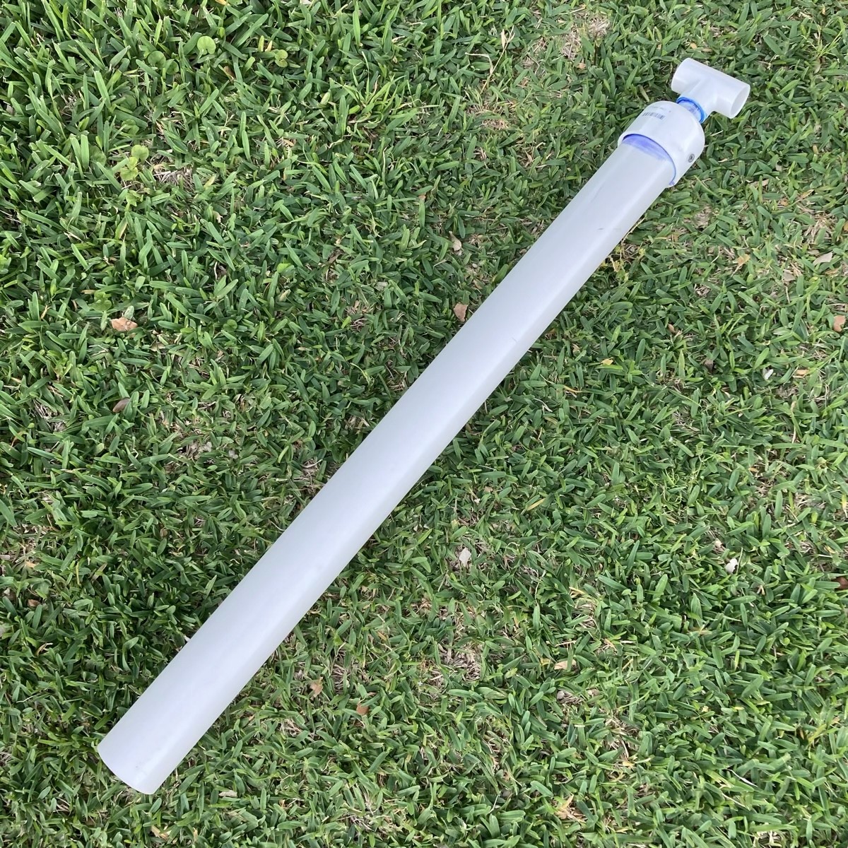 Glue the 3/4” tee onto the top of the 3/4" pipe to act as your handle. Drive a screw through to hold it tight.