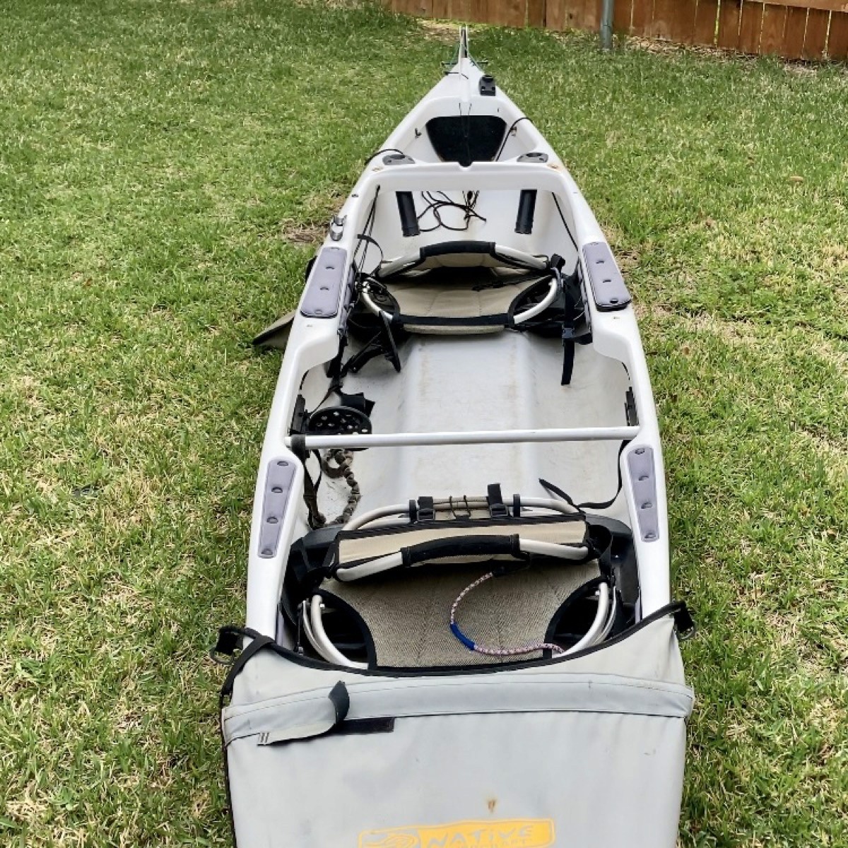 My solution? Find an older model tandem on the used market and rig it for my needs. I was lucky enough to find some folks getting rid of a first-generation Native Ultimate 14.5. Here is what I was dealing with: