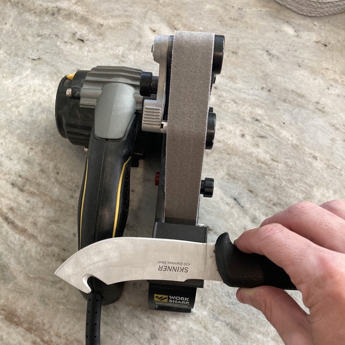 After a long weekend of cleaning feral hogs, field dressing kits are usually in rough shape. Using a power sharpener like the Work Sharp Ken Onion Edition with the Blade Grinding Attachment is a quick, consistent way to get skinning, boning, and caping knives back into field-ready condition.